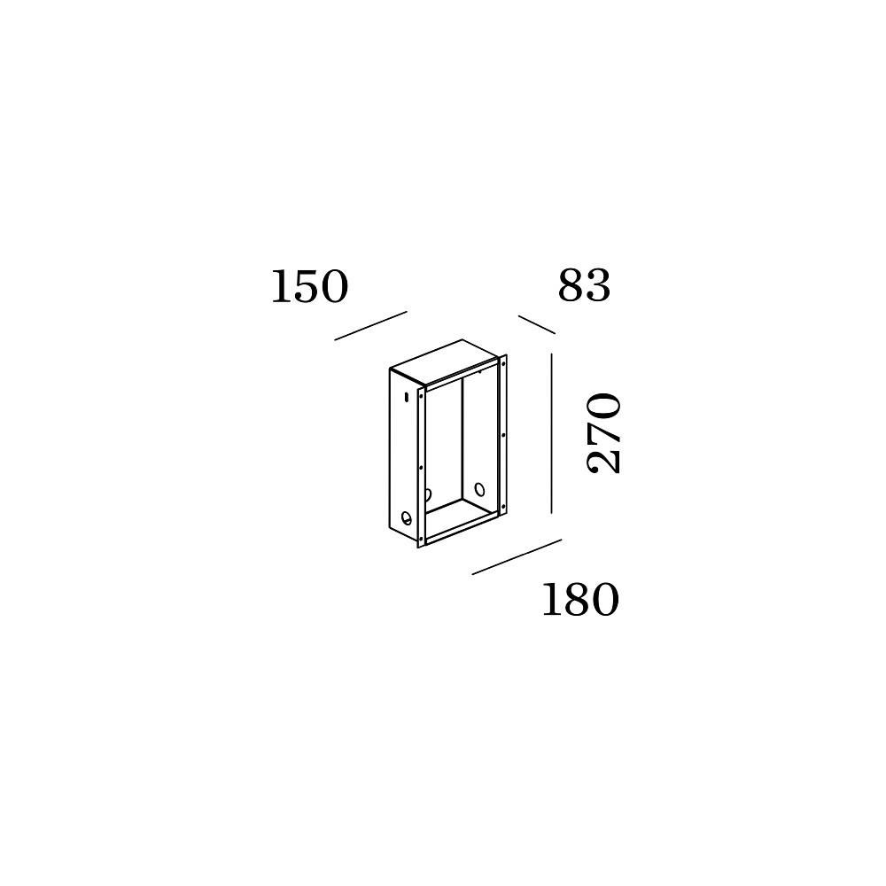 Het accessoire voor LED trapverlichting THEMIS 1.7 bestaat uit een inbouwdoos met afmetingen van 18x27 cm. Let op dat een geschikte inbouwdoos vereist is voor installatie, deze is niet inbegrepen.