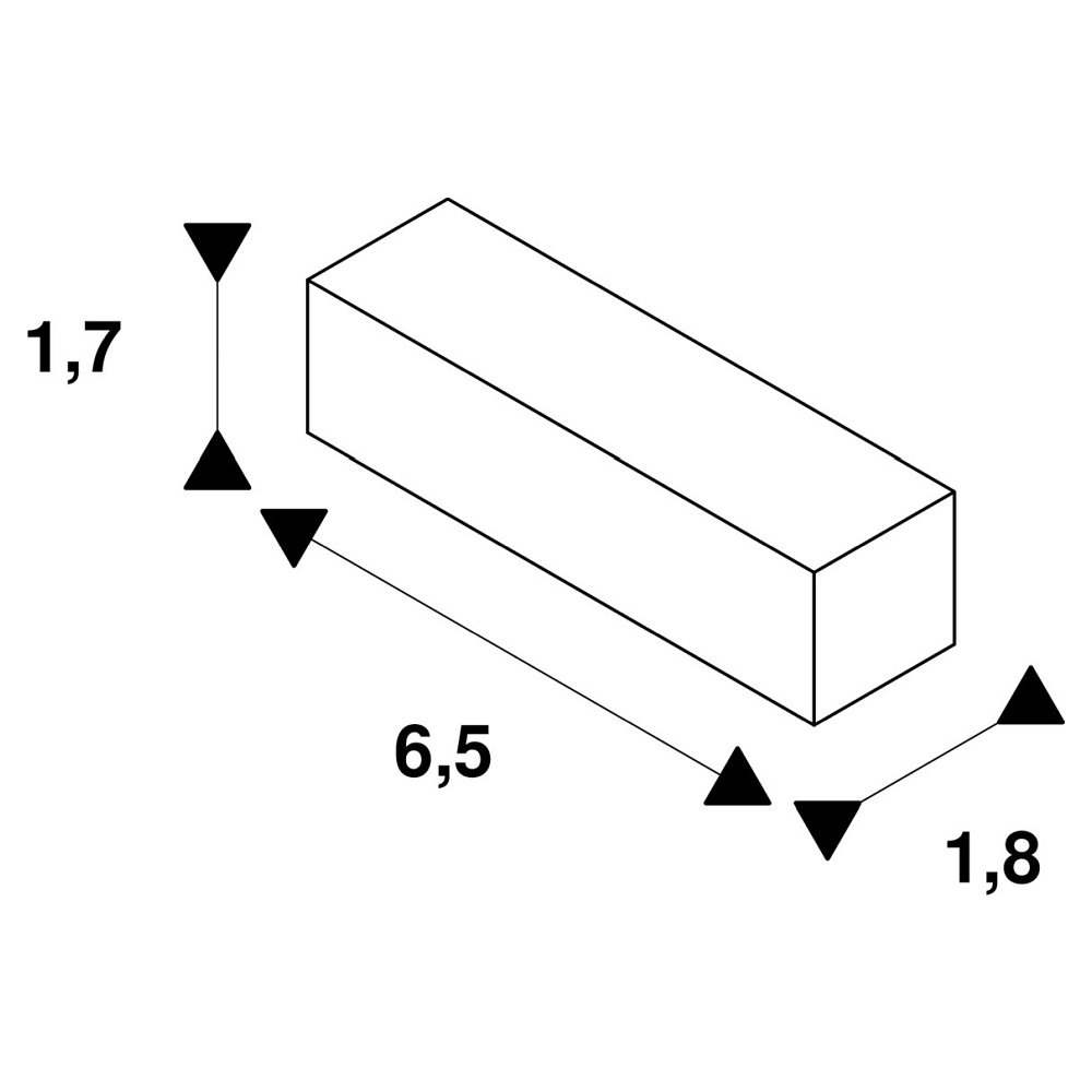 De longitudinale connector werkt met een spanning van 230V~ en heeft een maximale stroom van 16A. De afmetingen zijn L/B/H: 6,5/1,8/1,7 cm en is alleen geschikt voor intern gebruik. De connector heeft een beschermingsklasse van 1.