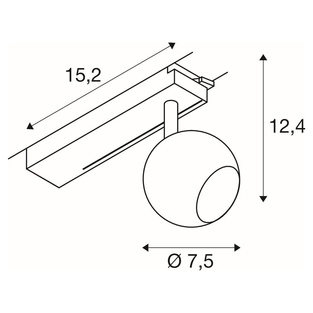 De lamp is gemonteerd op een beweegbare arm, wat betekent dat hij kan draaien en kantelen. Dit maakt het mogelijk om de lichtbundel met een spreidingshoek van 30° nauwkeurig naar het gewenste gebied te richten. De bolvormige behuizing van aluminium met een matzwarte laklaag combineert een modern design met een robuuste kwaliteit. Met een compacte kopdiameter van 7,5 cm integreert de lamp discreet in diverse verlichtingsconcepten.