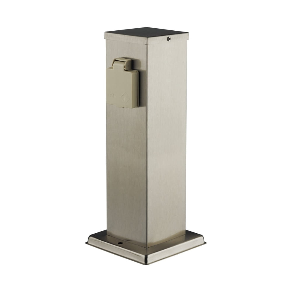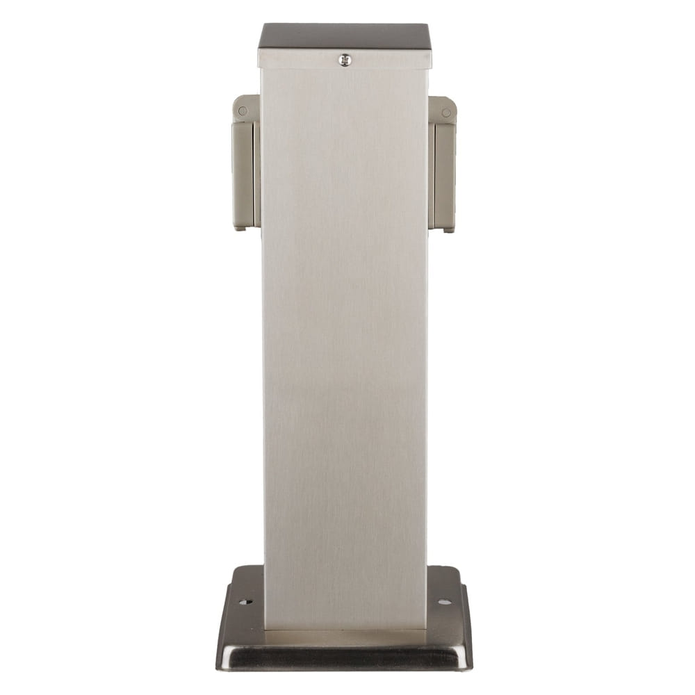 The energy distributor BANGKOK from Heitronic is a compact square energy distributor, suitable for fixed surface mounting both outdoors and indoors. It has 2 integrated sockets, each equipped with child protection and spring flap cover. The weather-resistant construction made of V2A stainless steel (stainless steel 304) ensures a long service life and an appealing design.