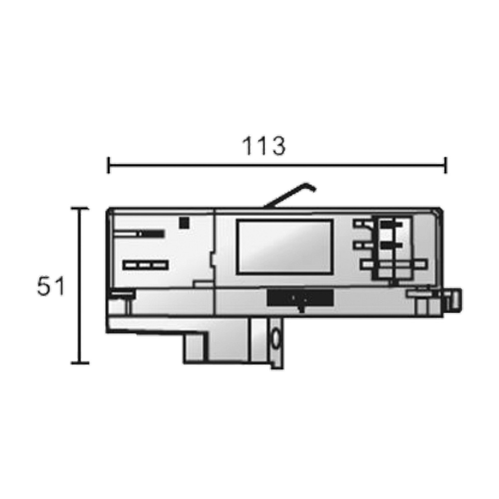 De driefasen adapter heeft afmetingen van 11,3 x 3,2 x 5,1 cm en weegt 62 kg. Dankzij zijn compacte afmetingen kan het discreet op de rail worden geïnstalleerd. De installatie is eenvoudig en rechtstreeks op het railsysteem.