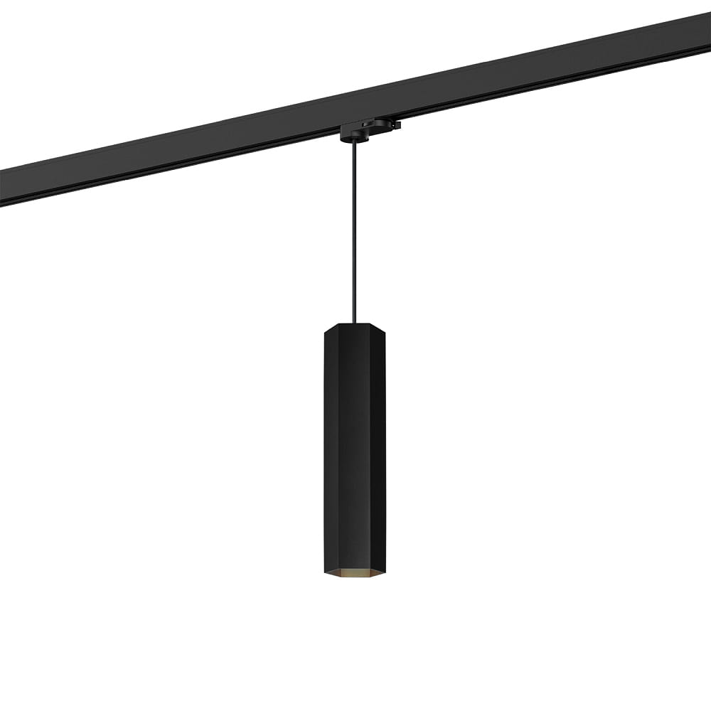3-fase pendelarmatuur HEXO ON TRACK 3.0 - PAR16 hoekig, lang, met adapter GU10 IP20, mat, gitzwart dimbaar