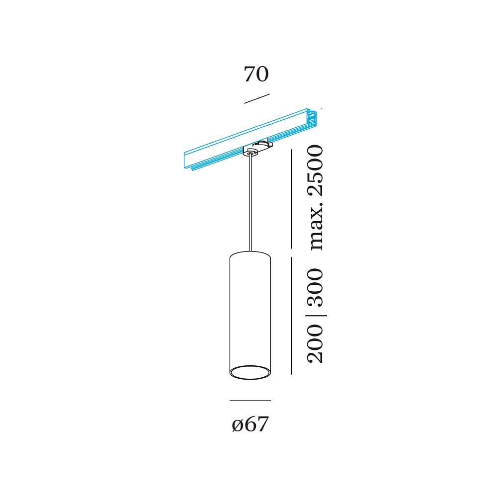 3-fase pendelarmatuur RAY ON TRACK 2.0 - PAR16 cilindrisch, kort, met adapter GU10 IP20