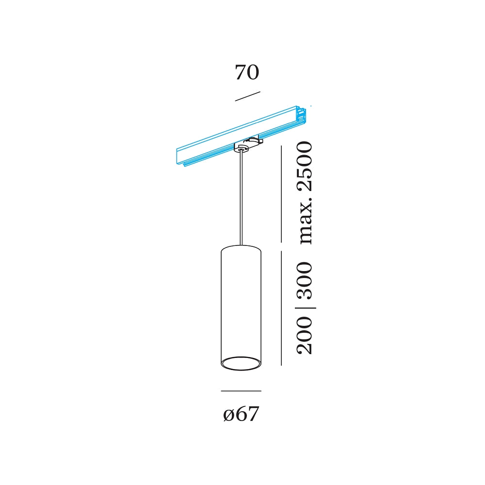 3-fase pendelarmatuur RAY ON TRACK 3.0 - PAR16 cilindrisch, lang, met adapter GU10 IP20, mat, verkeerswit dimbaar