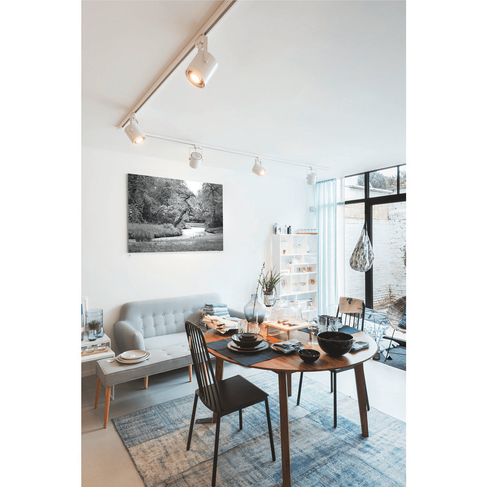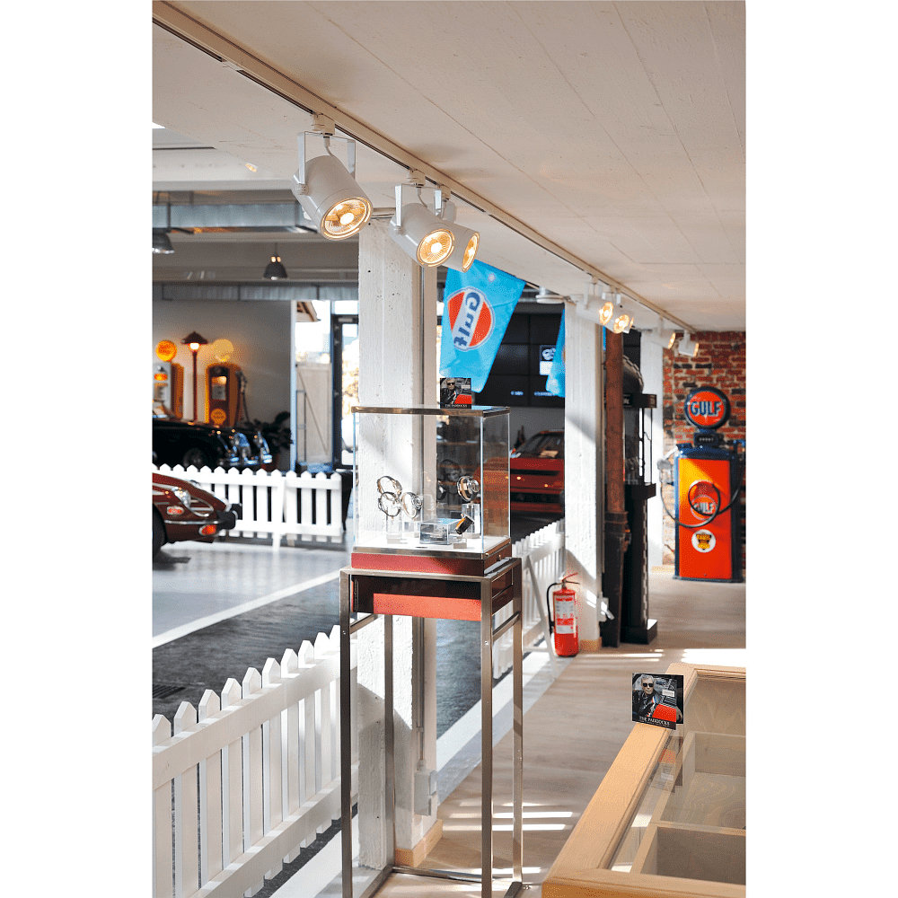 De 3-fase projector EURO SPOT ES111 is gemaakt van hoogwaardig aluminium en is wit van kleur. Met een gewicht van 0,86 kg is het gemakkelijk te installeren en past het perfect in elke binnenruimte.