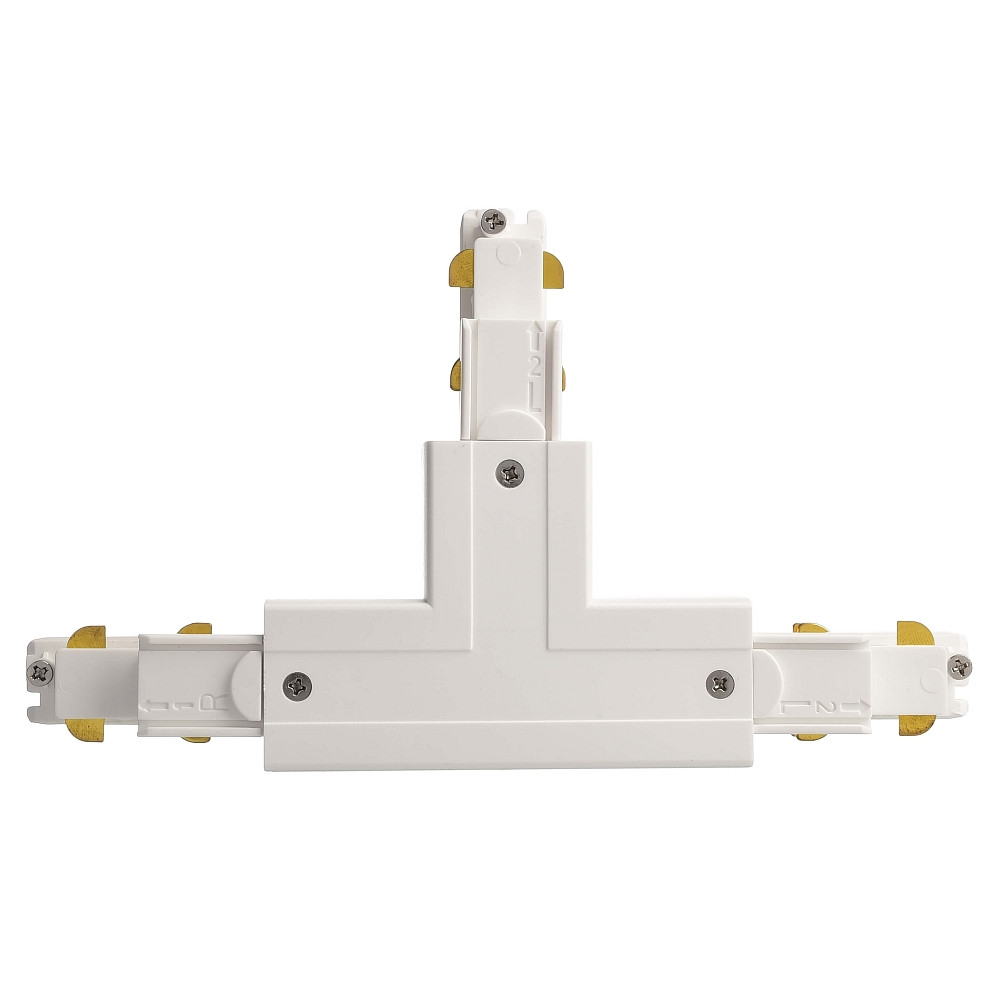De bedrijfsspanning voor de T-connector ligt tussen 220 en 240 volt. Het kan gedimd worden en heeft een maximale stroomcapaciteit van 48A. De installatie gebeurt via een railsysteem en het materiaal is plastic. De beschermingsklasse is IP20 en de afmetingen van het product zijn 20,3 x 11,9 x 3,55 cm.