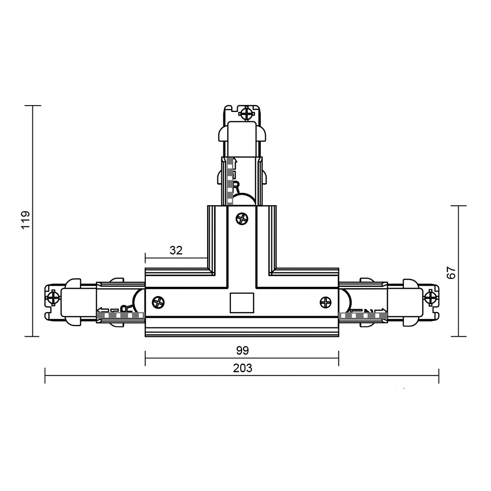 Accessoires voor D LINE DALI driefasenrail - T-connector met rechts-rechts-links omschakelmechanisme