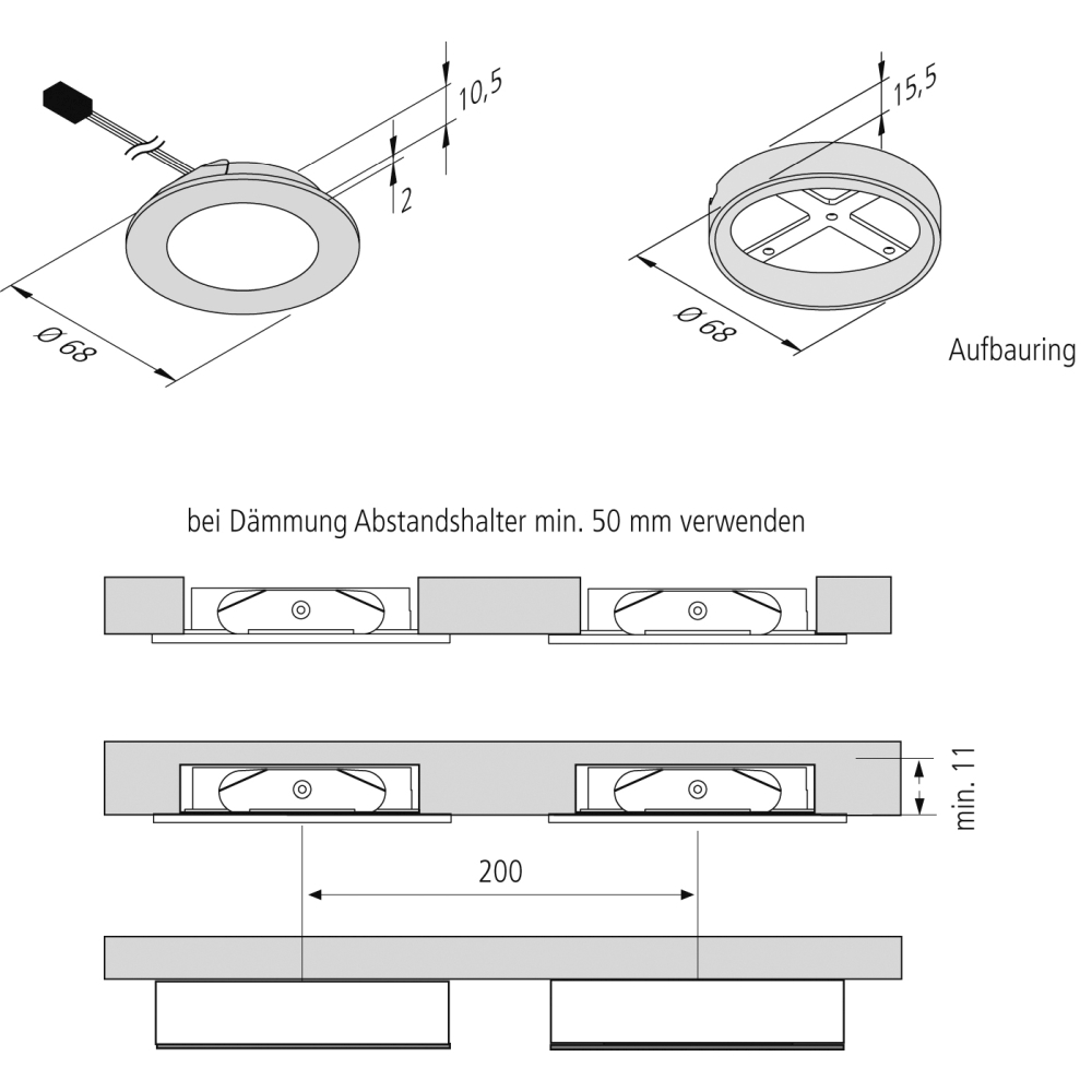 Thanks to the included wireless remote control attachment, controlling the recessed lights is particularly easy. With the appropriate accessories, the lights can also be dimmed to adjust the brightness individually.