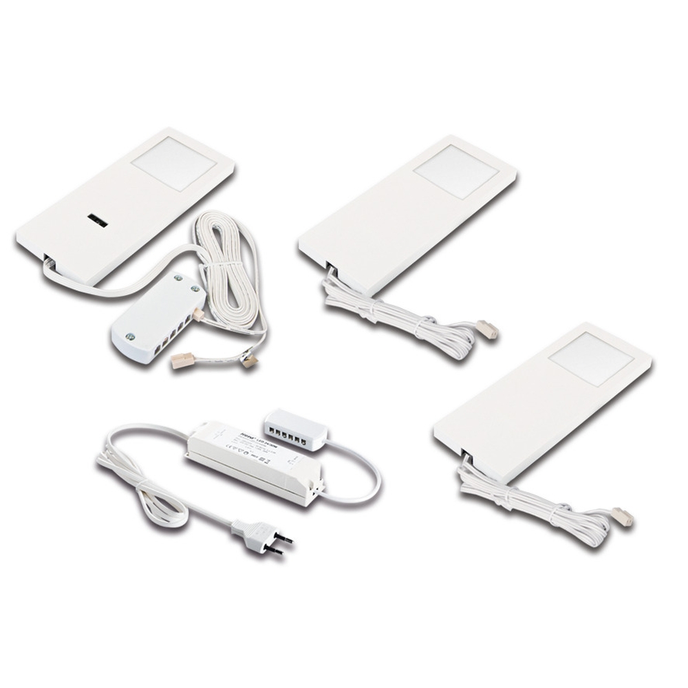 3pc. set of LED under-cabinet luminaire LED Slim-Pad F, IP20, with IR dimmer + transformer LED 24 / 30W, 5W 4000K, white