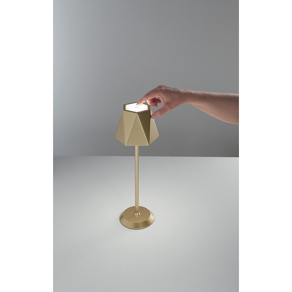 Acculamp KATY met aanraakdimmer IP54, goud mat dimbaar