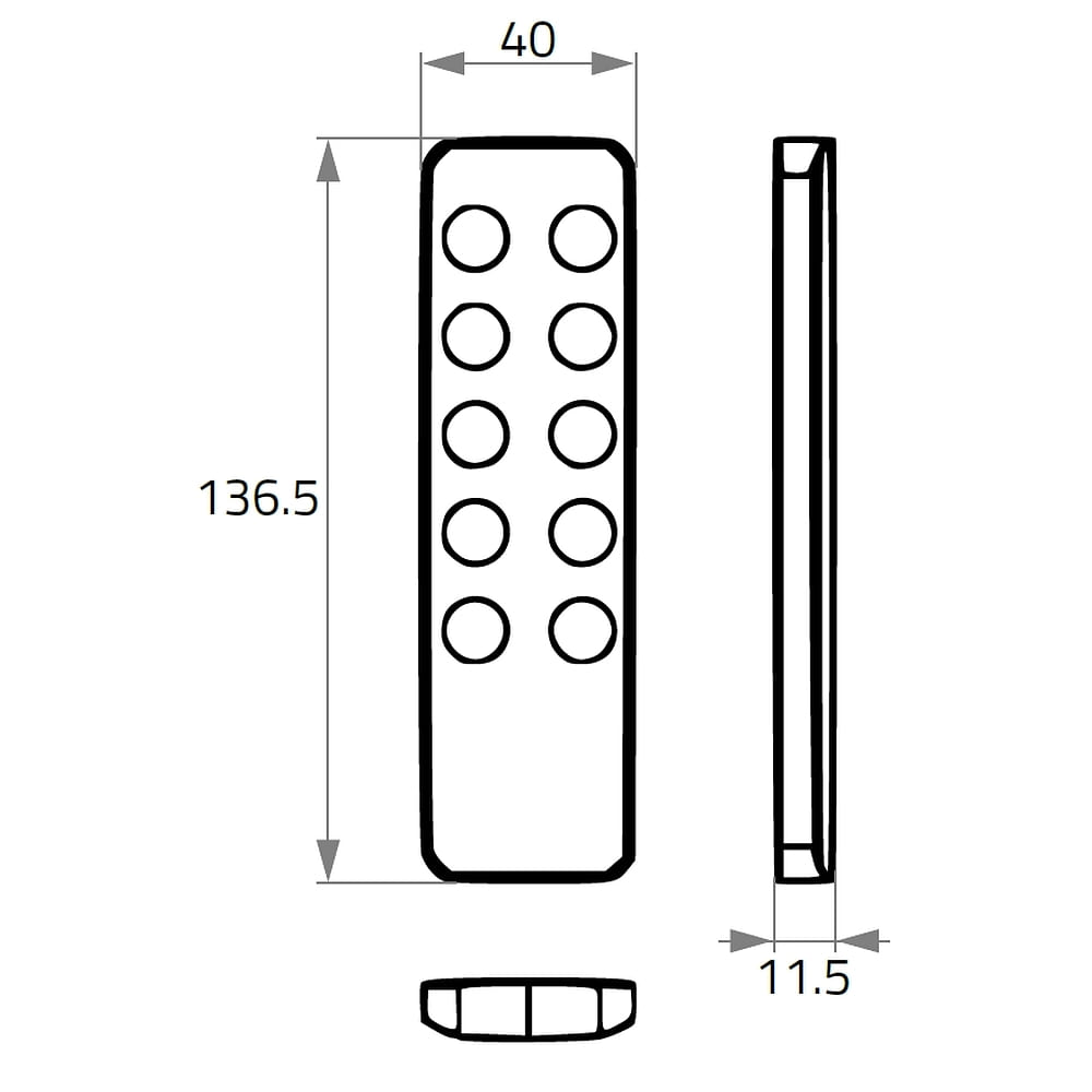 De afmetingen van de afstandsbediening zijn 13,7 x 4 x 1,2 cm en heeft een IP20 beschermingsklasse. De ontvanger bevat accessoires, maar de ontvanger moet apart worden aangeschaft.