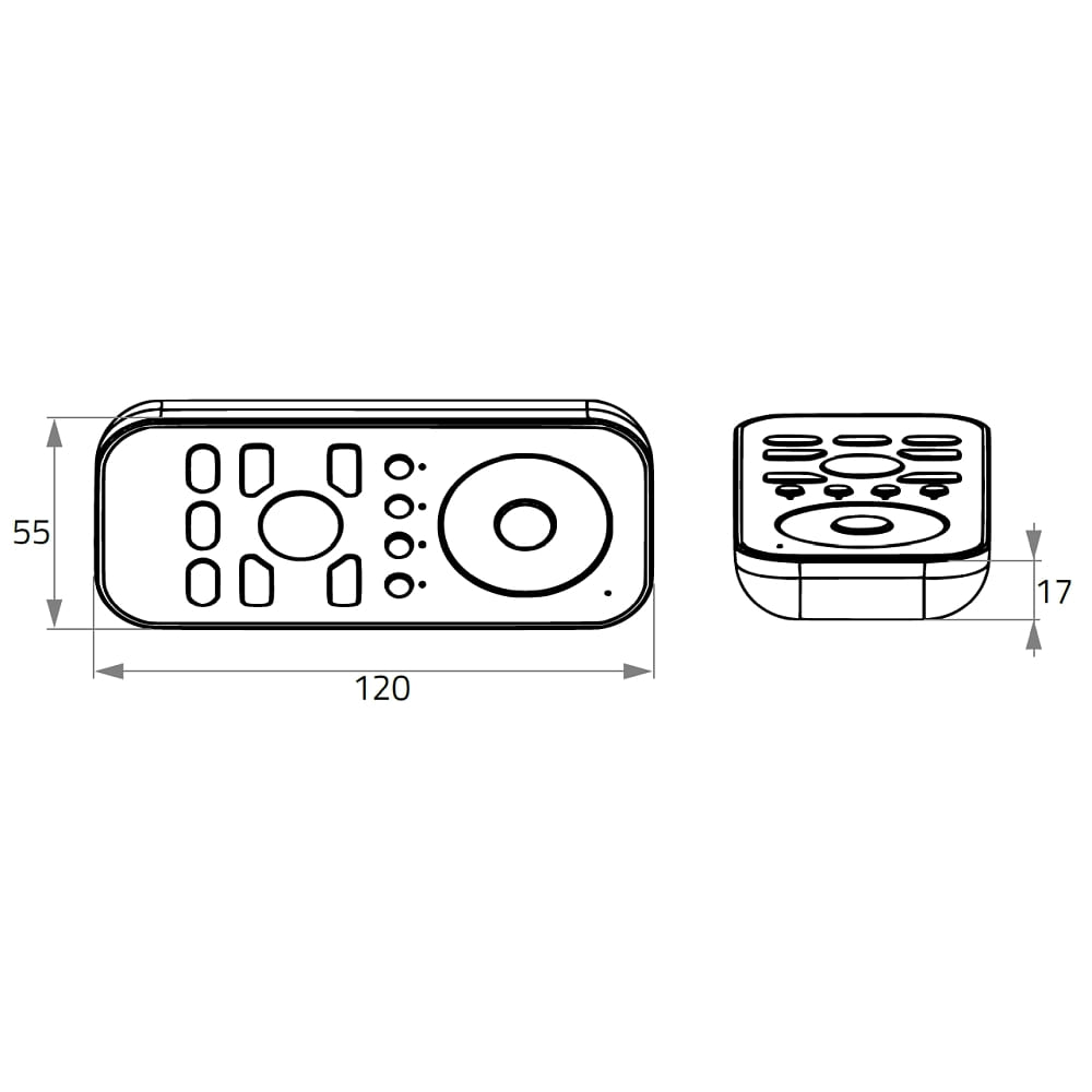 Met afmetingen van 12 x 5,5 x 1,7 cm is de radiozender compact en gemakkelijk te hanteren. De IP20-beschermingsklasse zorgt ervoor dat het apparaat beschermd is tegen stof en geschikt is voor gebruik binnenshuis.