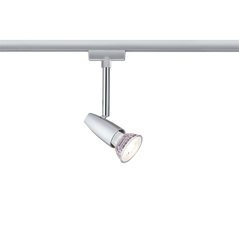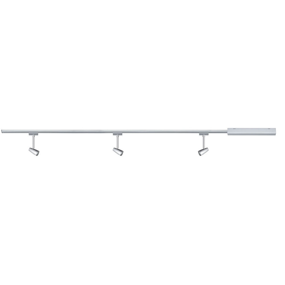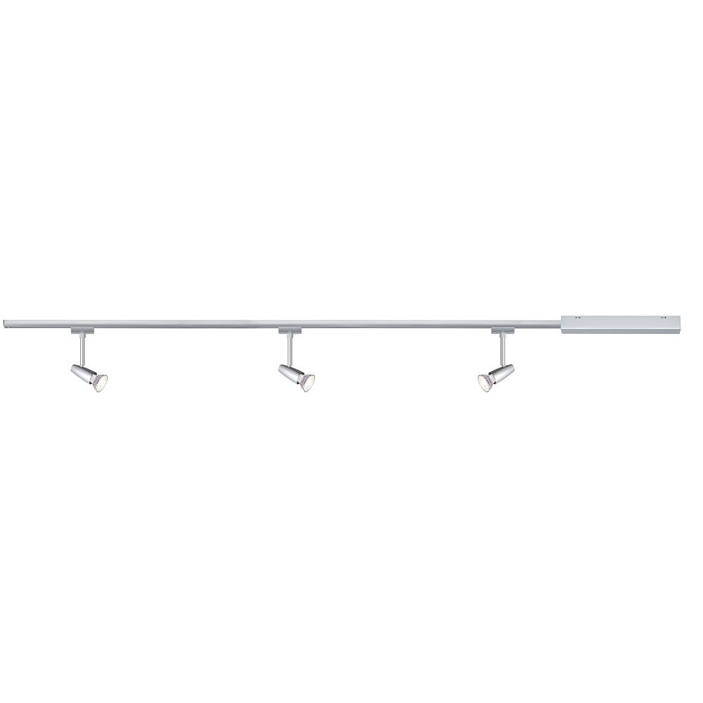 De startset voor eenfasige LED-rail URAIL BARELLI van Paulmann combineert een modern design met energiezuinige verlichting. De set bestaat uit 3 railspots, een transformator en een rail met een totale lengte van 120 cm. De spots hebben een GU10 fitting en kunnen worden gebruikt met een maximale vermogen van 10W.