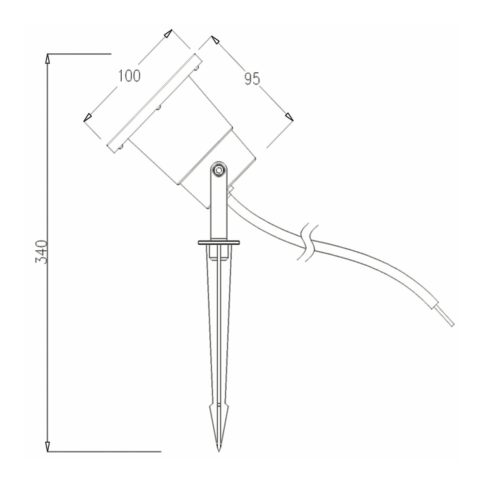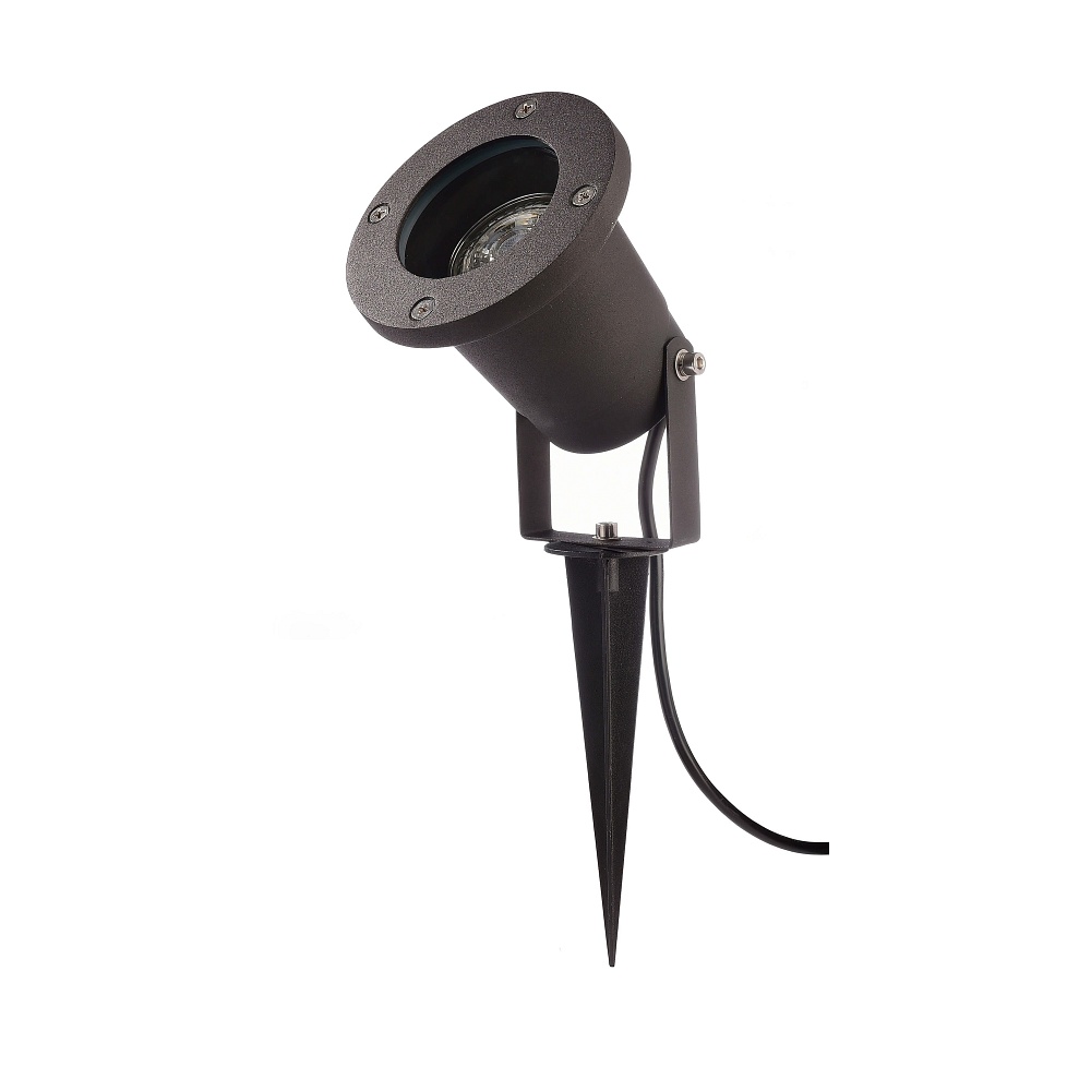 Externe LOMI-schijnwerper, IP65, GU10 max 7W, met grondpin + 200 cm IP44 stekkerkabel, in mat zwart aluminium