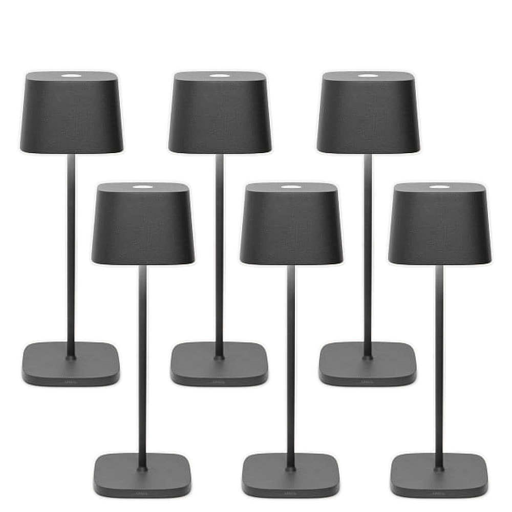 battery table lamp OFELIA TAVOLO PRO set of 6 IP65, dark grey, lacquered dimmable
