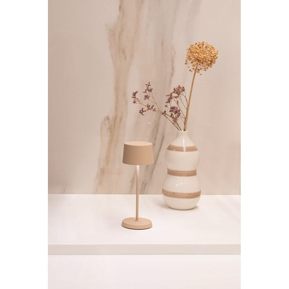 battery table lamp OLIVIA MICRO IP65, mat, sand coloured dimmable