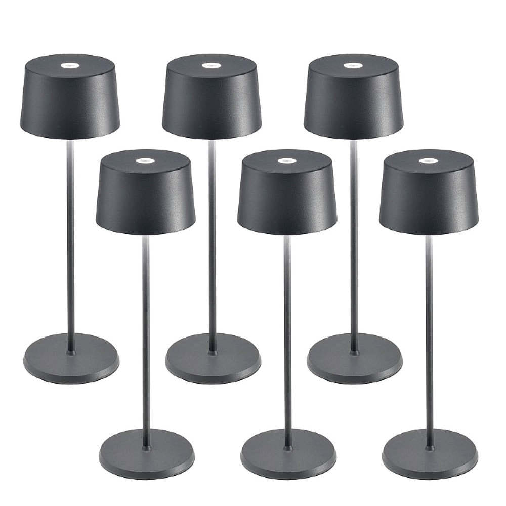 battery table lamp OLIVIA TAVOLO PRO set of 6 IP65, dark grey, lacquered dimmable