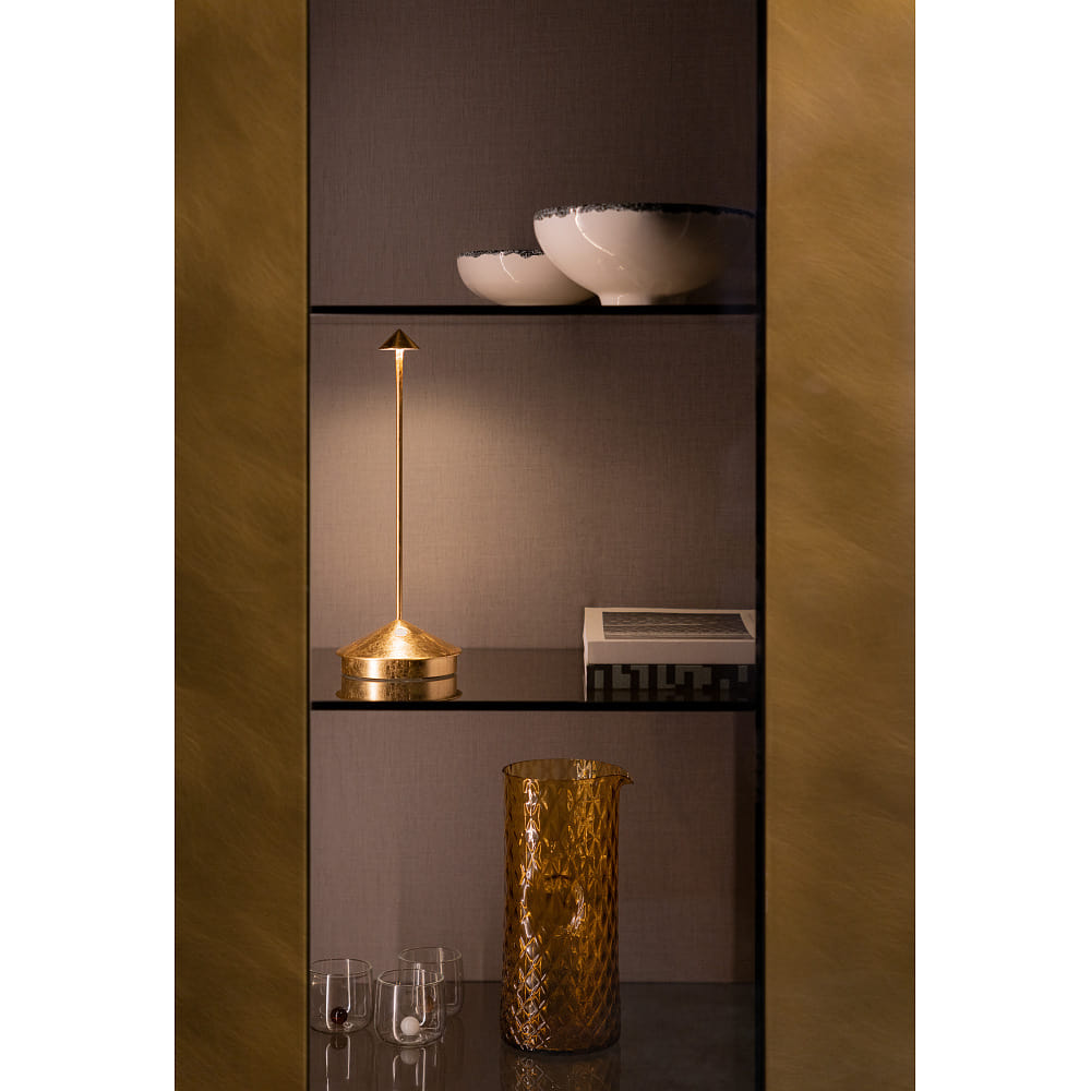 battery table lamp PINA TAVOLO PRO IP20, gold leaf, lacquered dimmable