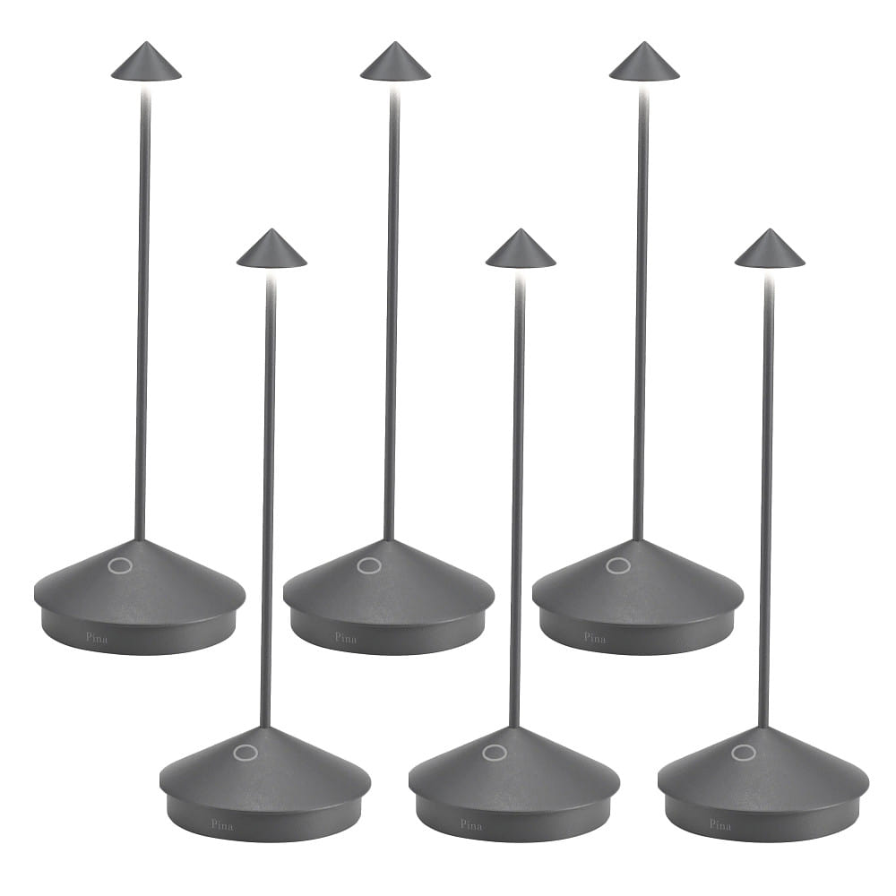 battery table lamp PINA TAVOLO PRO set of 6 IP65, dark grey dimmable