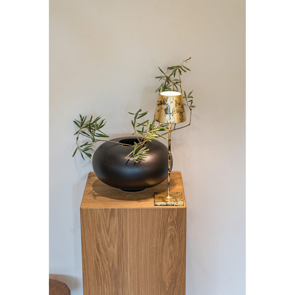 battery table lamp POLDINA TAVOLO PRO IP20, black, gold leaf dimmable
