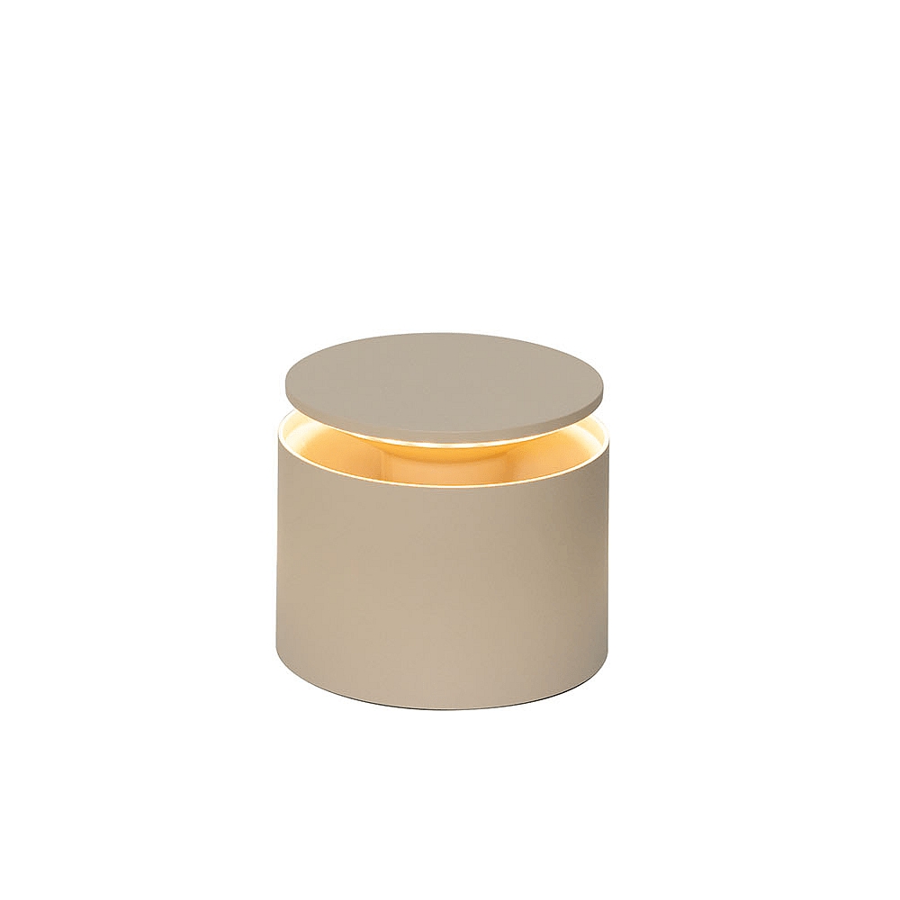 The battery-powered table lamp is made of sand-colored painted aluminum die-cast and is suitable for both indoor and outdoor use. With an IP protection rating of IP54, the lamp is protected against dust and splashing water and is ideal for use on furniture or tables.