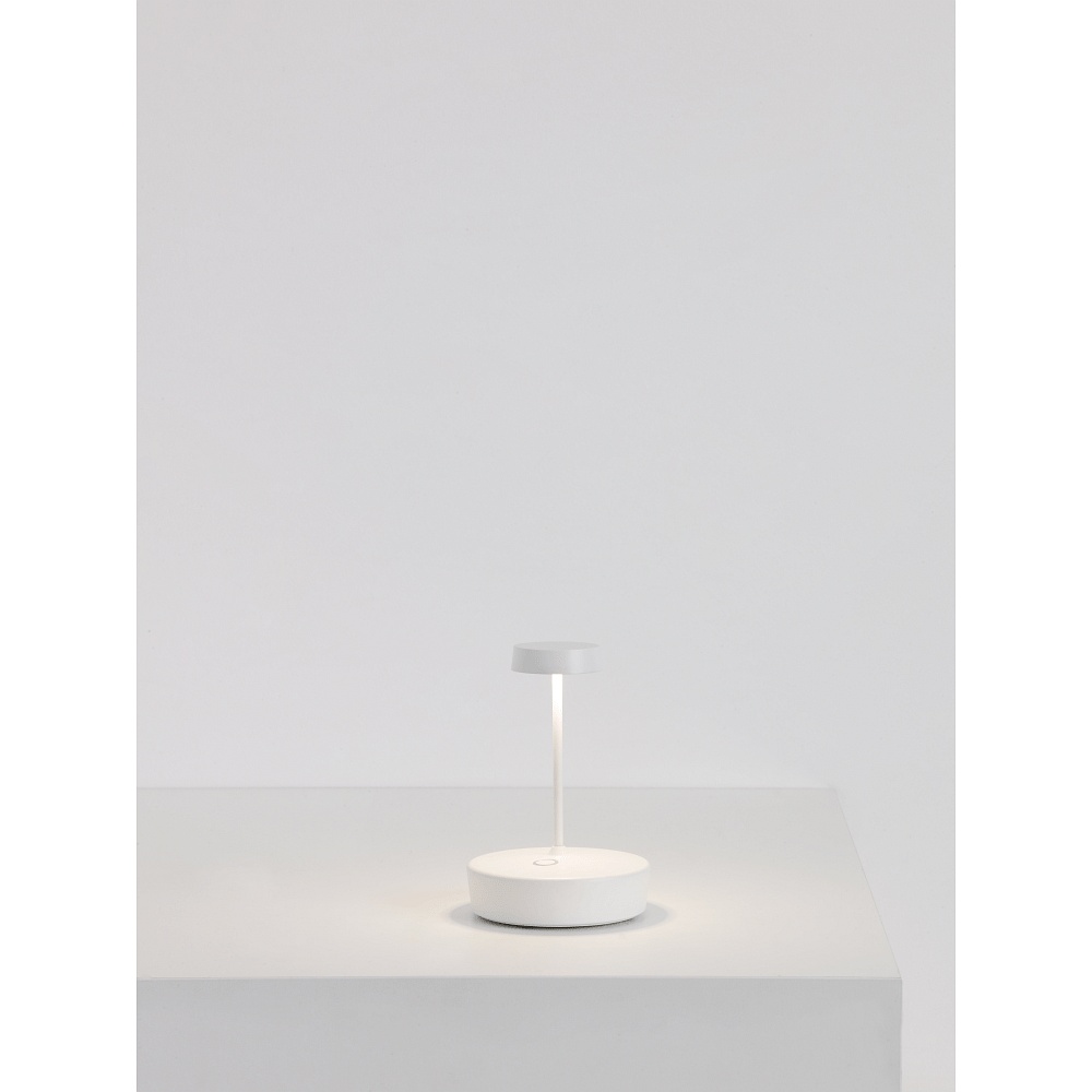 The LED Battery Table Lamp SWAP MINI is a versatile lighting product with a power consumption of 2W and a warm white light output of 267lm. Thanks to the integrated touch dimmer, the brightness of the lamp can be easily adjusted.