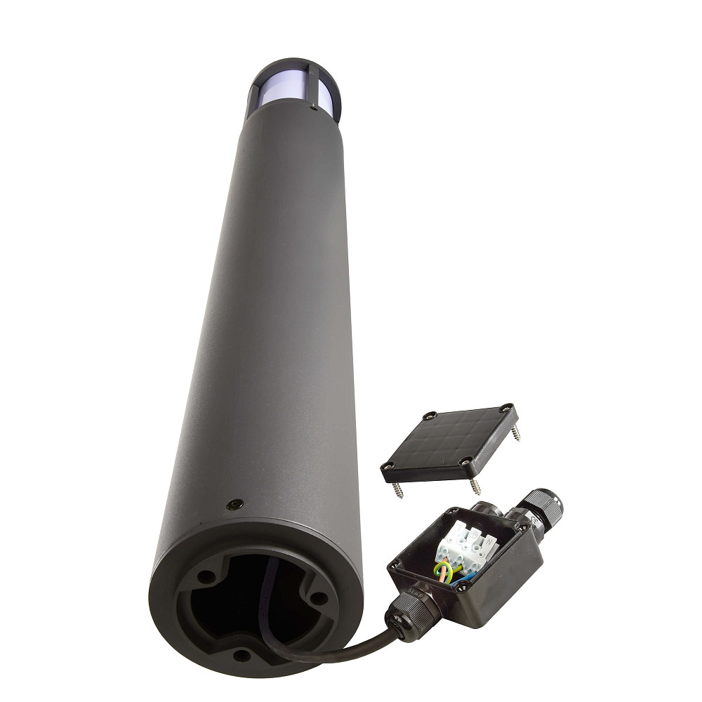 The bollard light has a diameter of 10.8 cm and a height of 100 cm. It has an integrated socket for replaceable E27 LED bulbs. This allows you to determine the consumption, color temperature, dimmability, or SmartHome compatibility with your choice of bulb. The light is compatible with SmartHome bulbs, giving you additional design options such as dimming, changing the light color, or RGB(W) light.