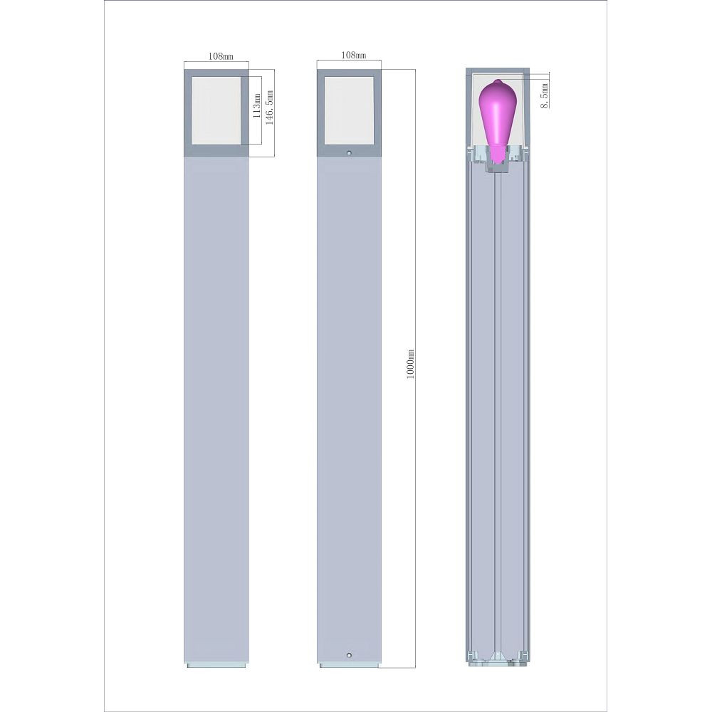 Poller light FACADO II SQUARE, IP65, 100cm, E27, with IP67 junction box, aluminum die-cast / PC