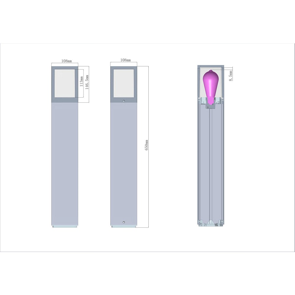 bollard lamp FACADO II 650MM OPAL square E27 IP65, dark grey, mat dimmable