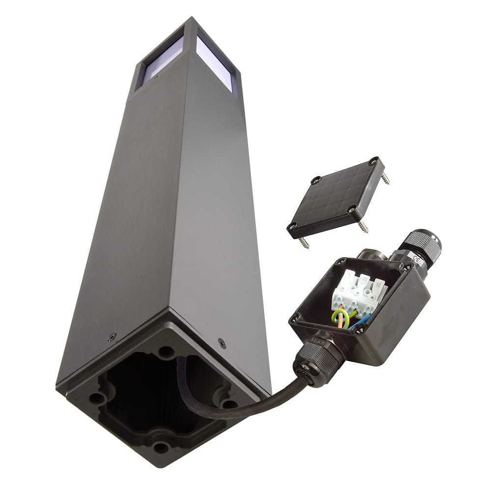 Pedestal light FACADO II SQUARE, IP65, 65cm, E27, with IP67 connection box, aluminum die-cast / PC