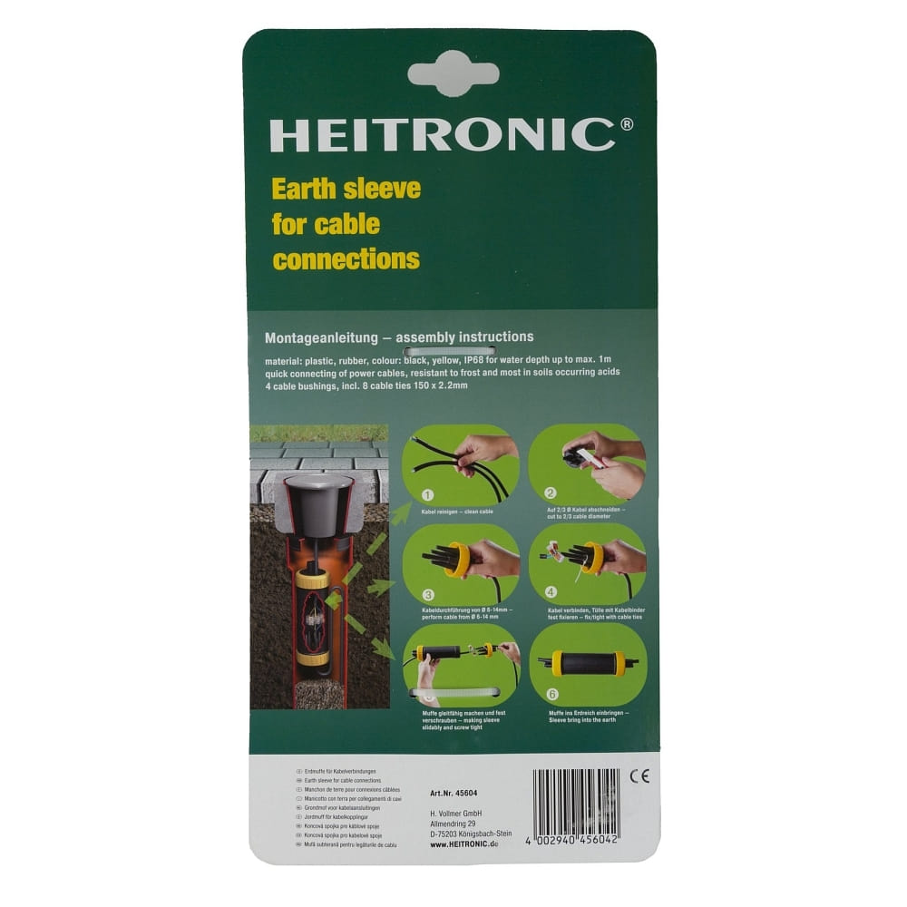 The outdoor cable connector with item number HEI-45604 is the ideal solution for securely connecting your outdoor lights and accessory components. The highly durable plastic housing ensures a reliable connection, even in adverse weather conditions.