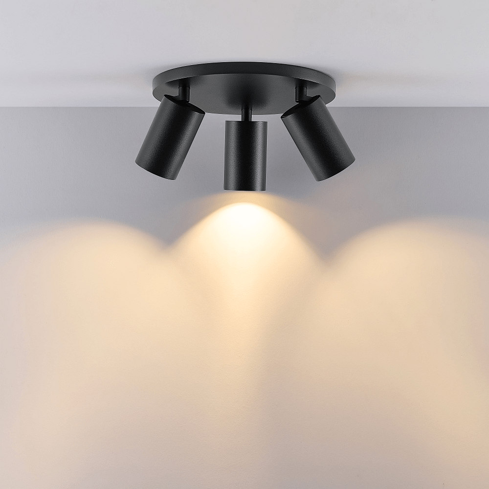 ceiling luminaire CAN TILT ROUND BASE Ø 25CM MIX‘N MATCH 3 flames, round, without shade, cardanic swivelling GU10 IP20, black