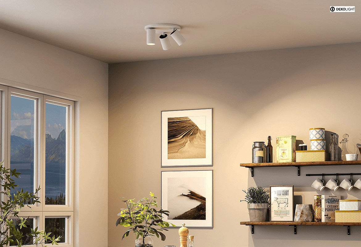 The luminaire operates with three GU10 sockets, each capable of handling up to 7.5 watts. The choice of the light source is up to you, allowing you to individually determine consumption, brightness, light color, and even SmartHome compatibility. The operating voltage is 220-240 volts with a mains frequency of 50/60 Hz. Protection class 1 ensures safe use, while the IP20 rating is designed for use in dry rooms.