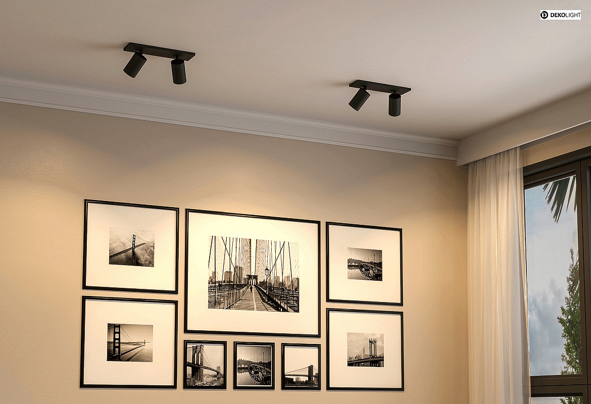 The ceiling spotlight is designed for two GU10 bulbs with a maximum diameter of 5 cm and a power of up to 7.5 watts. The bulbs are not included, giving you the freedom to choose light color, brightness, and energy consumption individually. Thanks to compatibility with dimmable bulbs and appropriate accessories, you can flexibly adjust the lighting mood.