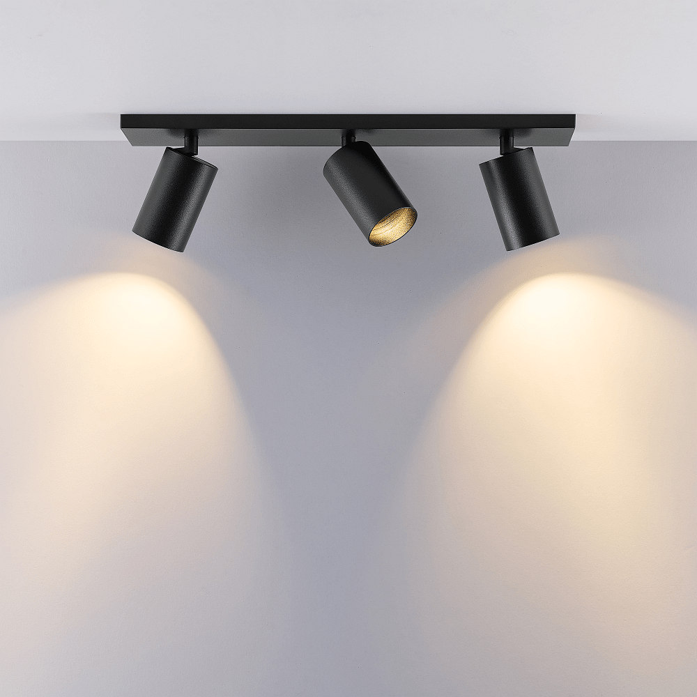 The fixture is equipped with three GU10 sockets that allow the use of high-voltage reflector lamps up to 7.5 watts. This lets you decide how bright or warm the light should be. The spotlight heads can be rotated 350° and tilted 90°, so the light can be directed exactly where it is needed. This flexibility makes the fixture particularly functional and enables optimal illumination of specific areas.