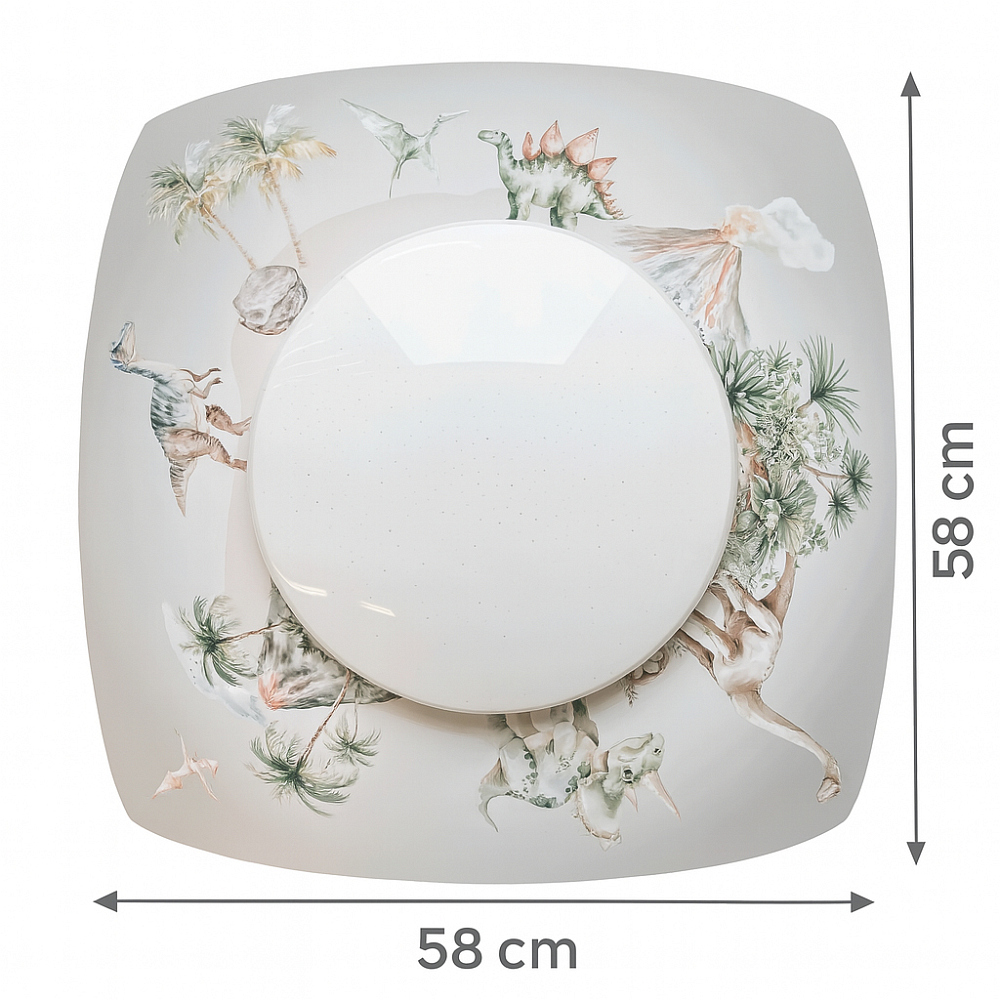 The LED ceiling light JURASSIC STARLIGHT from Elobra impresses with its modern technology and appealing design. With a power output of 24 watts, it produces a luminous flux of 2400 lumens, providing bright and pleasant lighting. The fixture features a multicolor design and is made of high-quality materials such as MDF and a special film that ensures even light distribution.