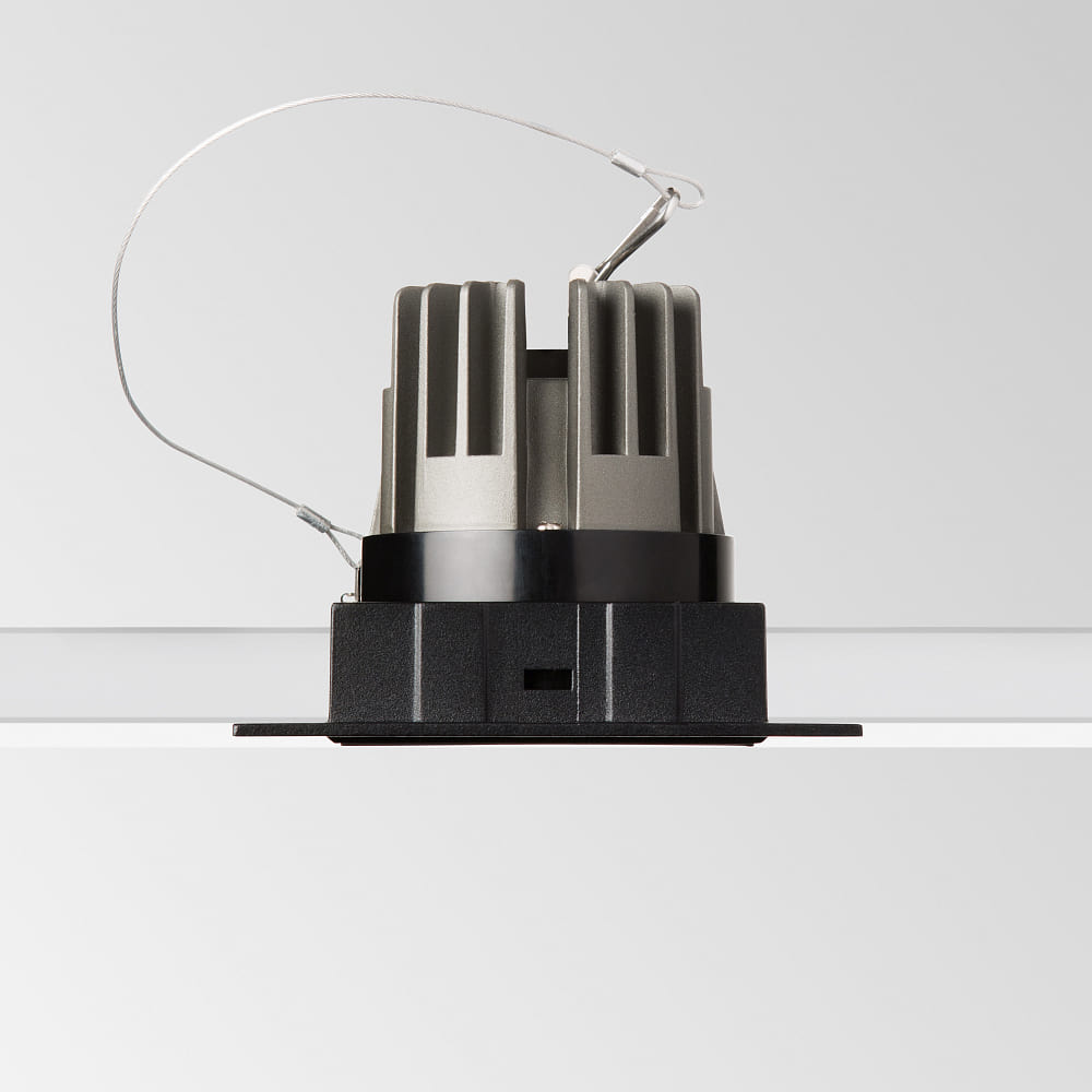 The LED Recessed Ceiling Light GAME TRIMLESS SQUARE is ideal for glare-free, true-color point illumination in demanding private areas, retail spaces, offices, reception desks, or other commercial areas. It is perfect for recessed installation in cavity and panel ceilings in dry indoor areas.