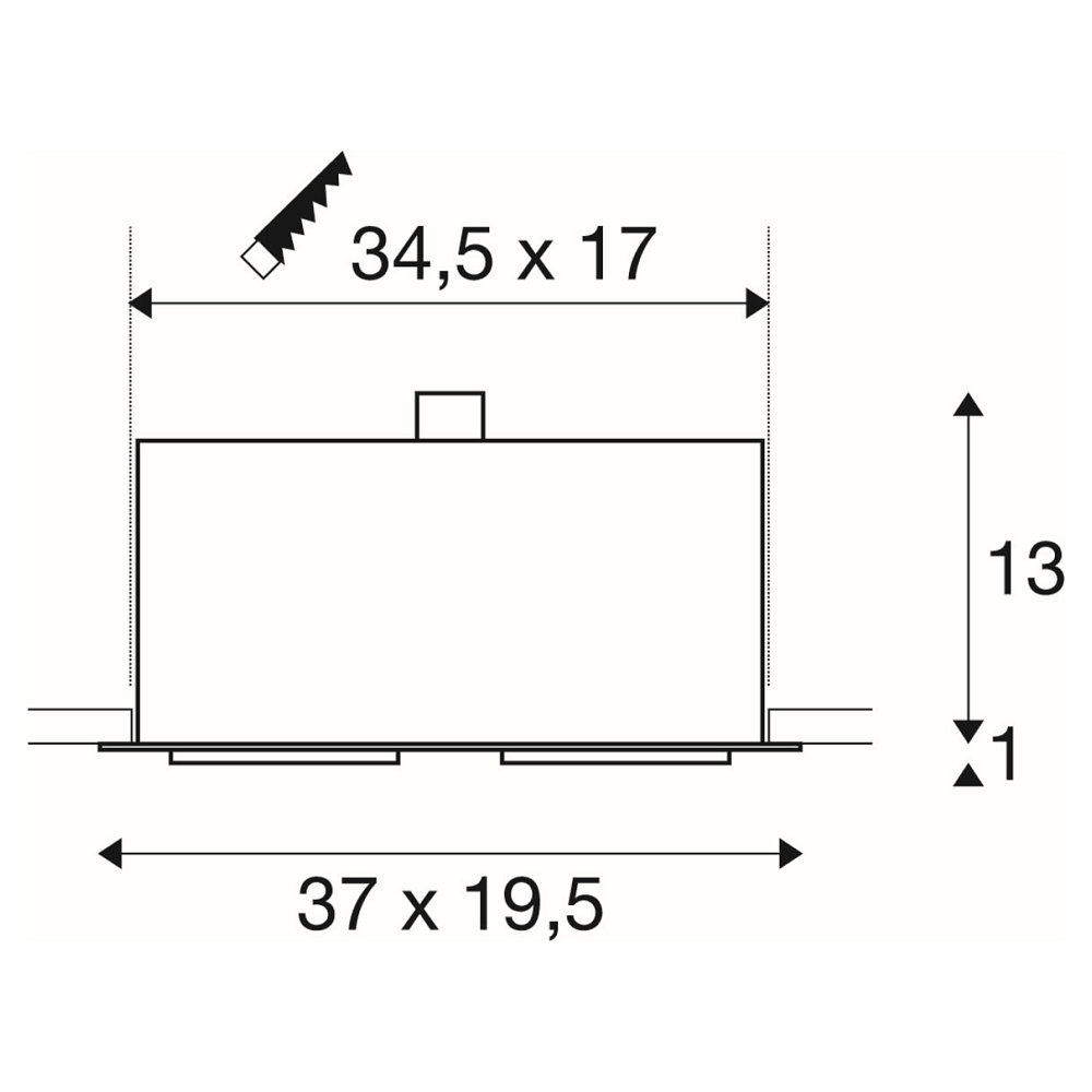 This recessed ceiling spotlight has tiltable lamp heads, allowing you to direct the light precisely. The installation depth is 15 cm, and the installation opening has a rectangular shape with a length of 34.5 cm and a width of 17 cm. The spotlight is suitable for GU10 / QPAR111 type lamps with a maximum power of 75W.