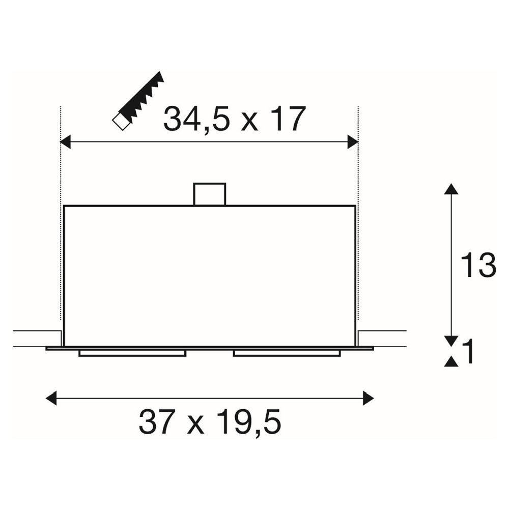 The square shape of the Recessed Ceiling Spotlight KADUX 2 ES111 Downlight with dimensions L/ W/ H: 37.00/ 19.50/ 14.00cm fits harmoniously into the overall look of the room. With a rectangular installation opening of Length 34.5cm and Width 17cm, this light offers easy installation and an attractive lighting solution for any room.