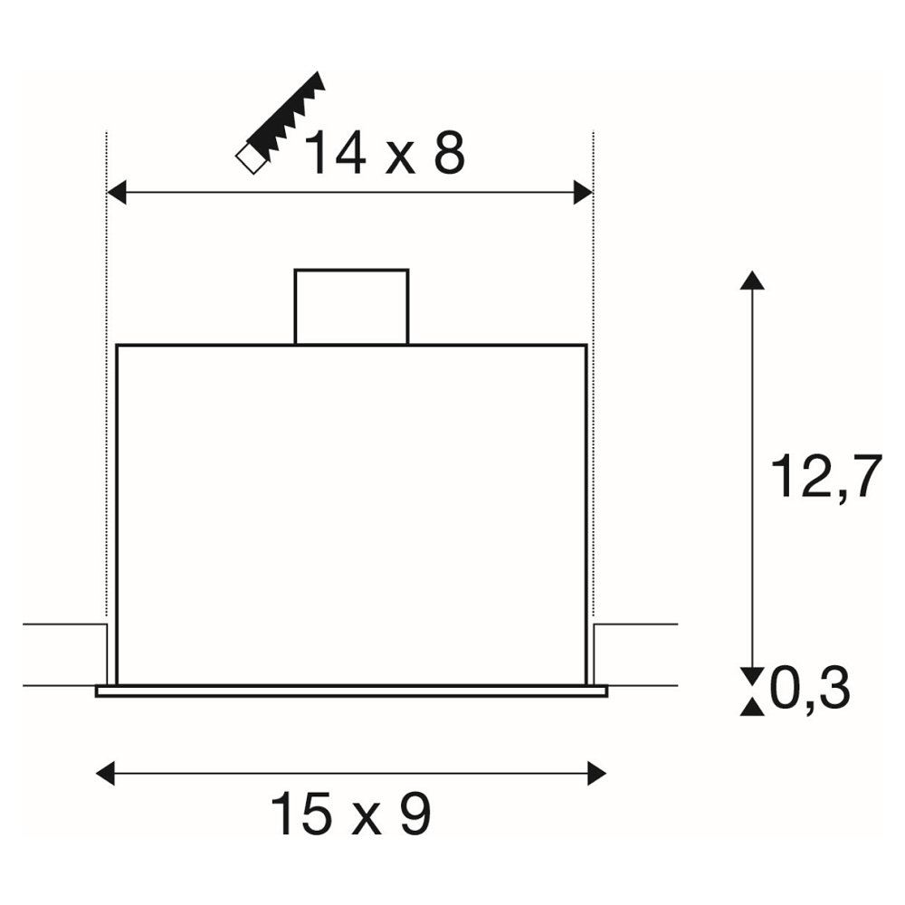 Thanks to the GU10 base designation, the KADUX 2 Downlight is compatible with a variety of light sources. Please note that the light source is not included. The lamp head is adjustable, and the robust lamp housing ensures a long lifespan. The maximum ceiling thickness is 30mm, and the installation opening has a length of 14 cm and a width of 8 cm.
