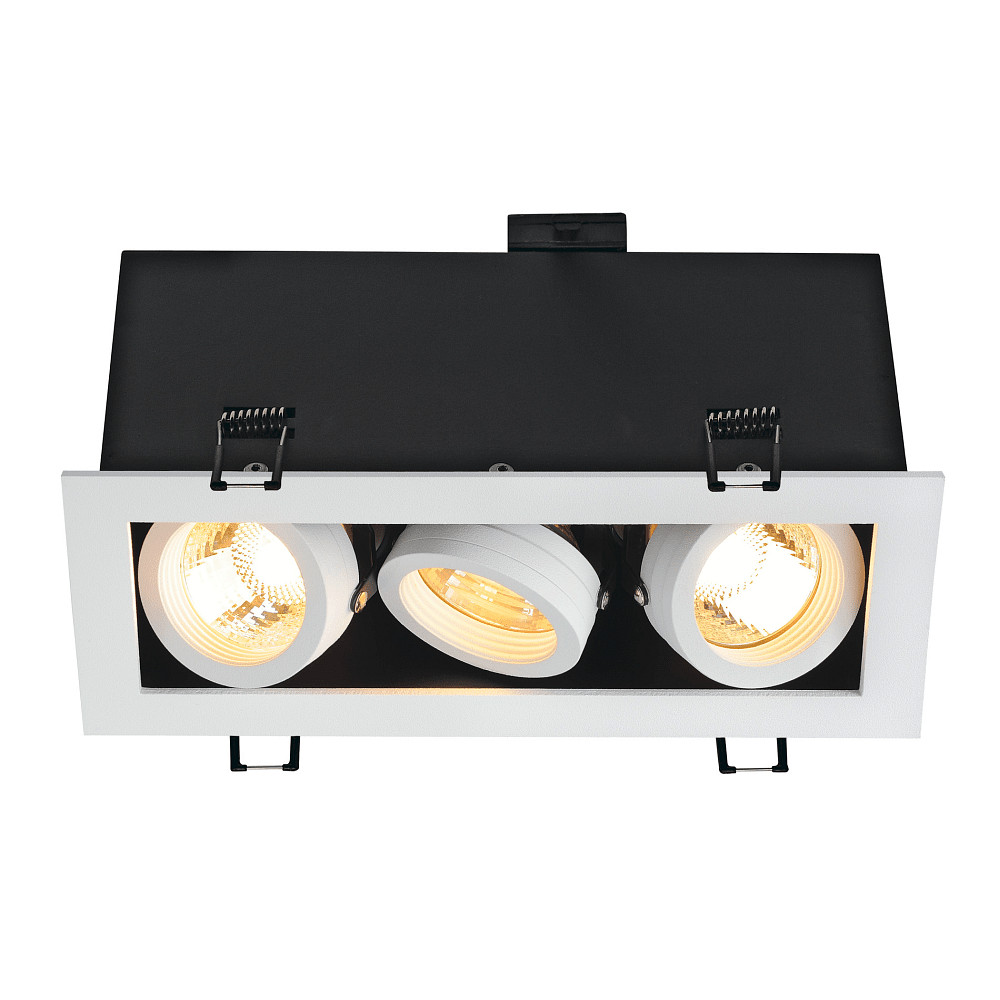 The KADUX 3 GU10 Downlight is manufactured by the renowned brand SLV. Light sources are not included in the package. The installation opening of the spotlight is Length: 20cm and Width: 8cm. With its high-quality craftsmanship and versatile applications, this recessed ceiling spotlight is the perfect choice for any indoor lighting.