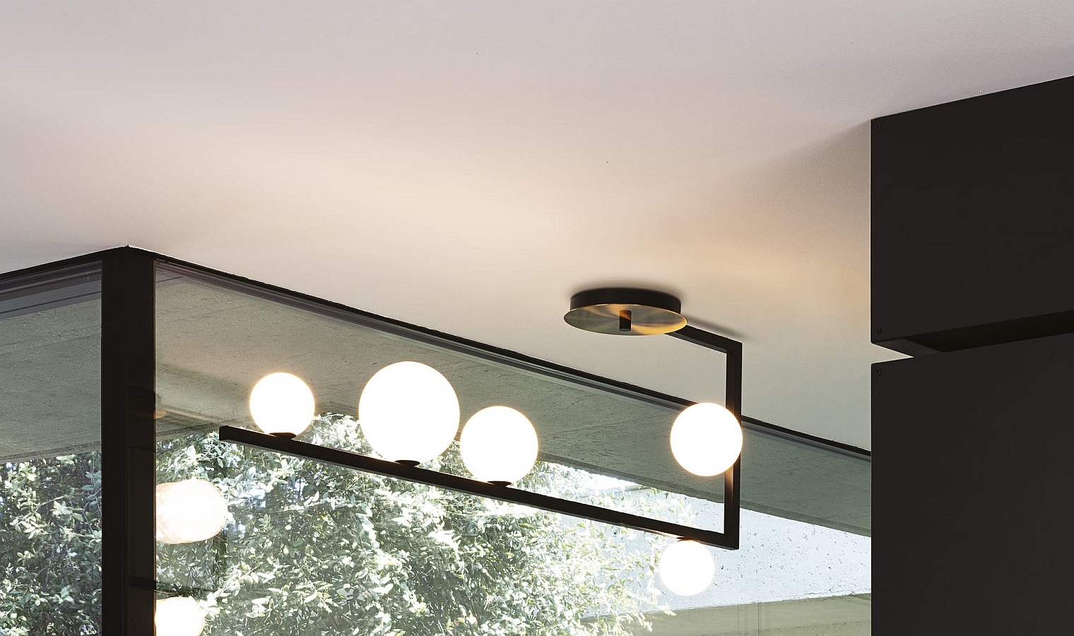 The ceiling mount of the BIRDS PL5 is equipped with a frosted brass disc, which provides an elegant look. The fixed glass spheres in different sizes create a harmonious arrangement and give each room a special atmosphere.