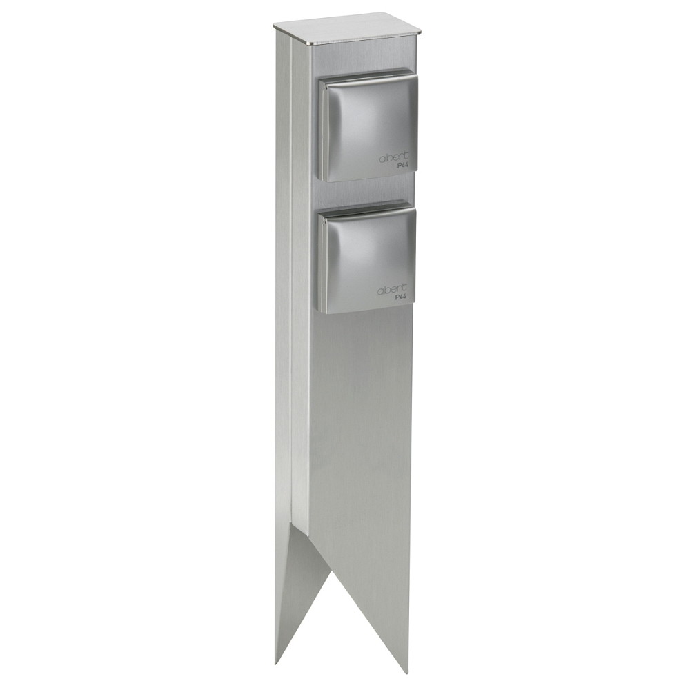Contactdoos met grondpen TYPE NO 3300 2-voudig, met stekker, verticaal, rvs mat