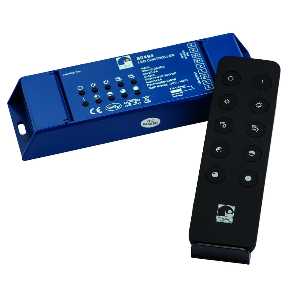 De Rutec Projects radiocontroller voor LED-verlichting is een veelzijdige controle-eenheid voor monochrome LED-verlichtingsproducten. Met een maximaal vermogen van 240W bij 12V of 480W bij 24V, levert het voldoende energie voor verschillende toepassingen.
