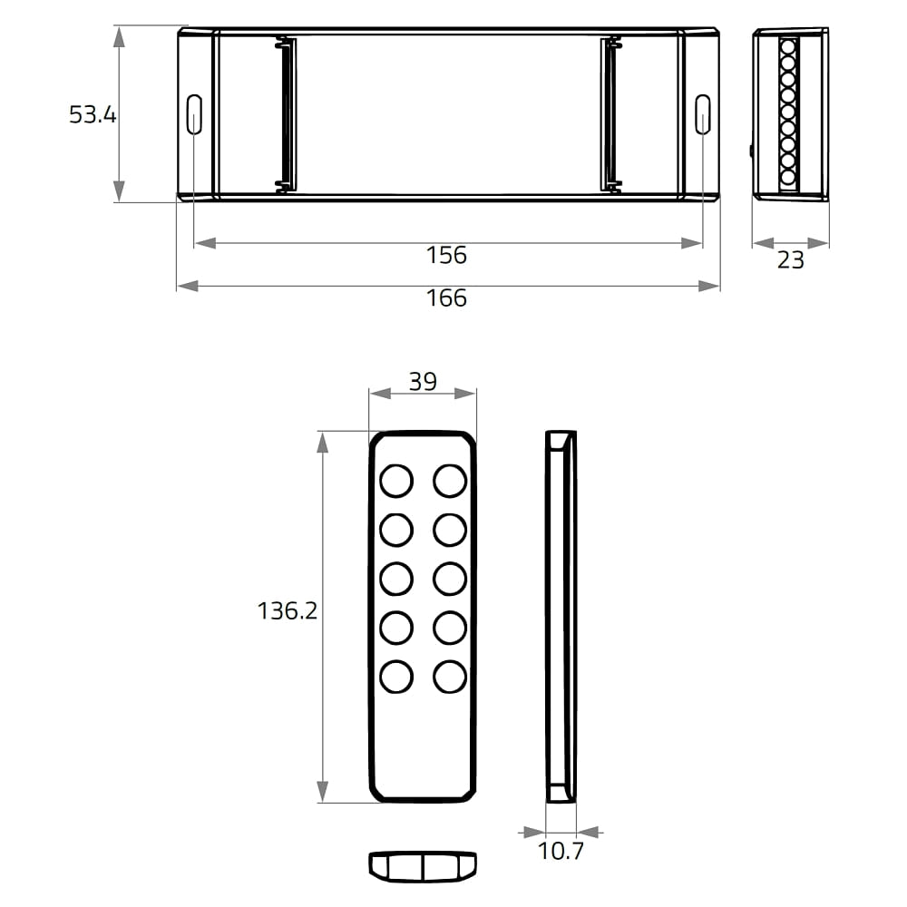 Radiocontroller voor LED-verlichting, IP20, 12V/24V, 240W/480W, met afstandsbediening + wandmontage, 30 meter