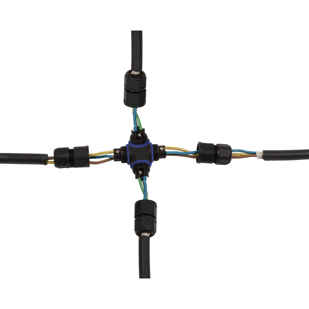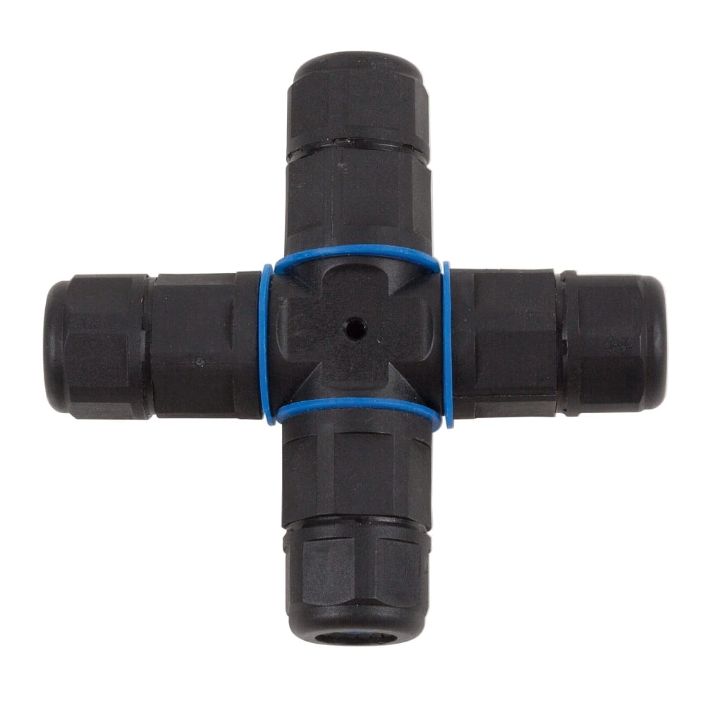 Cross cable connector, 3-pin, IP68, black