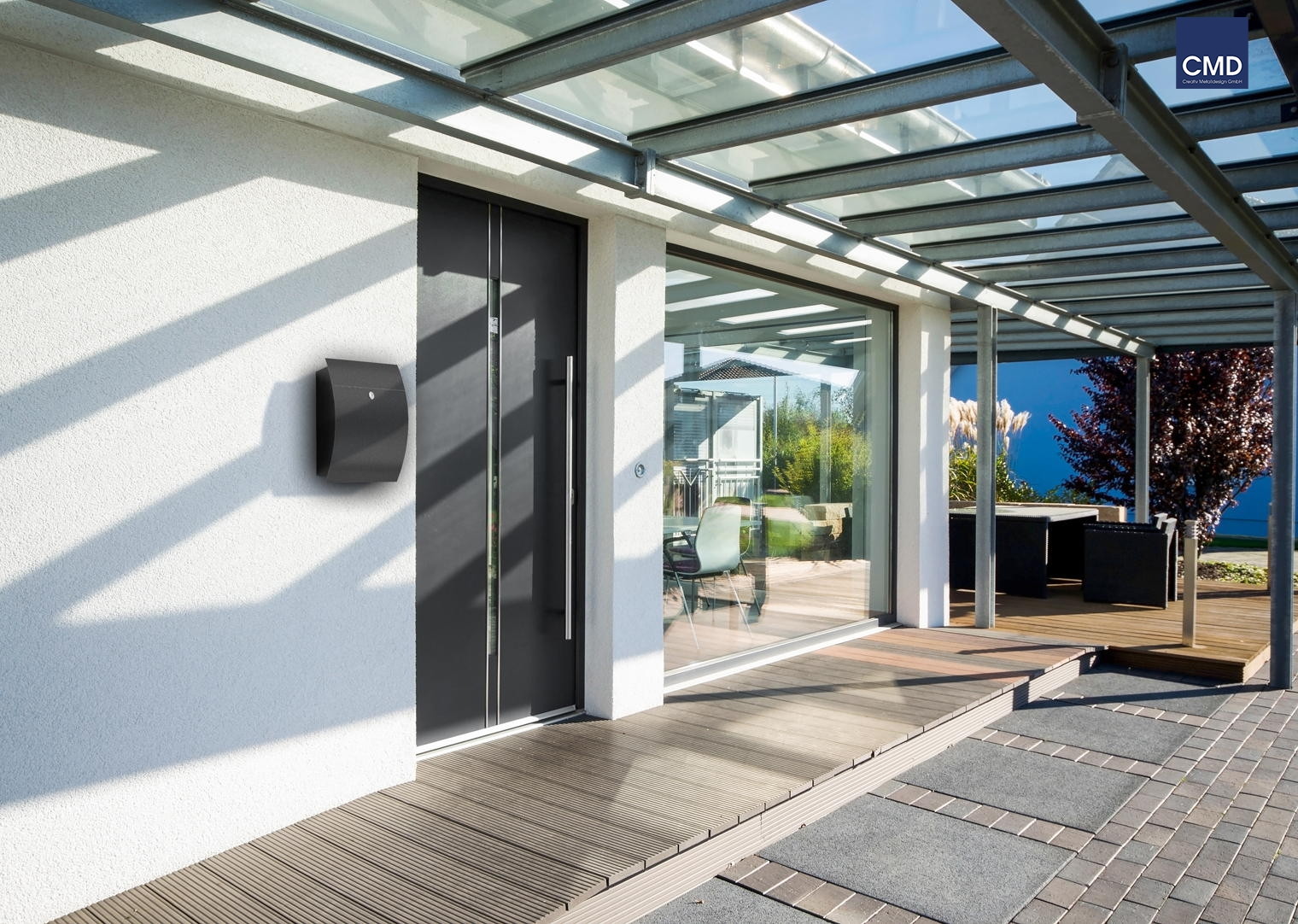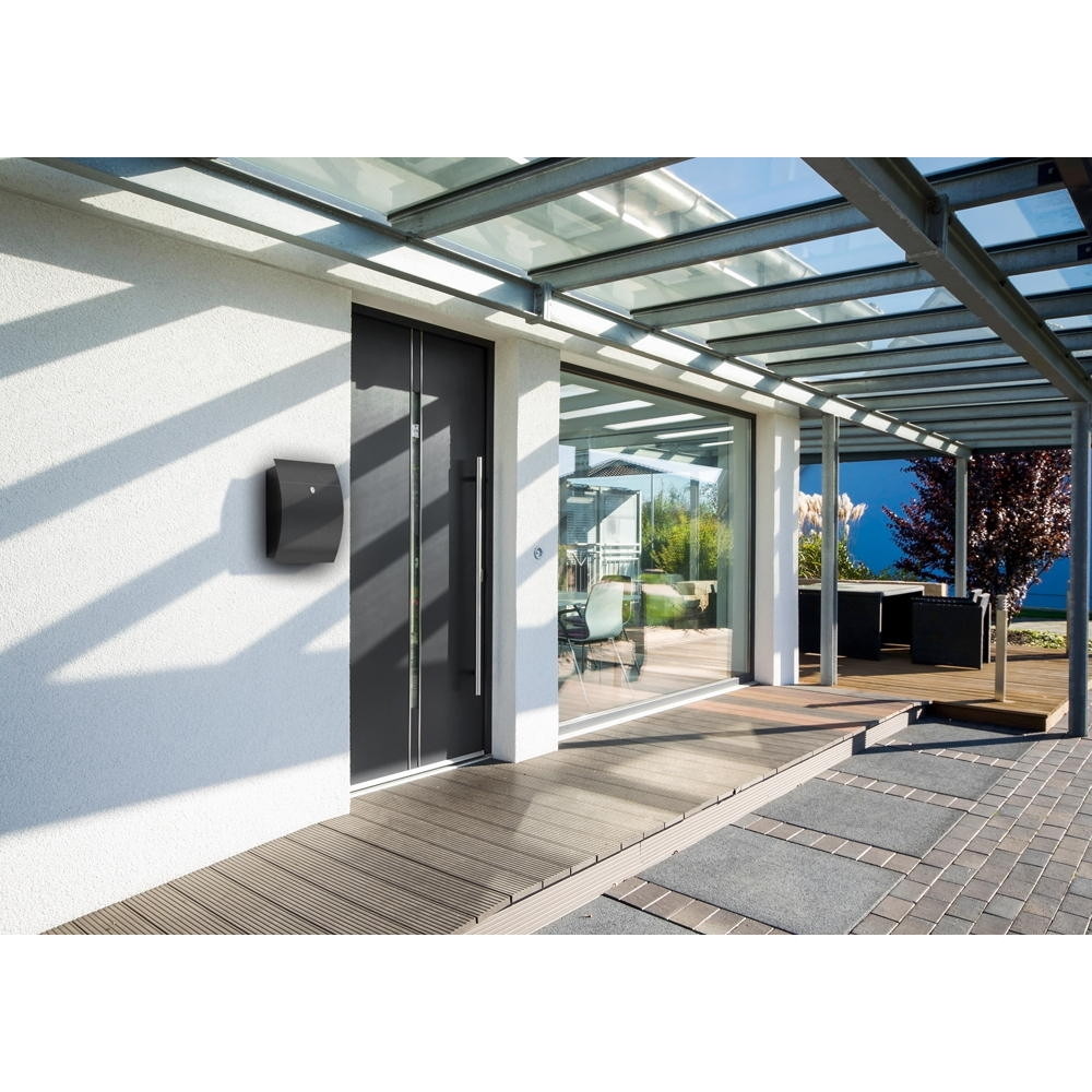 The CMD-77 mailbox impresses with its modern, angular design featuring a subtle curved surface. With dimensions of 31 cm width, 40 cm height, and 14 cm depth, it fits ideally on many different wall surfaces. The anthracite-colored finish not only gives the mailbox an elegant appearance but also ensures a timeless look that harmoniously blends into various environments.