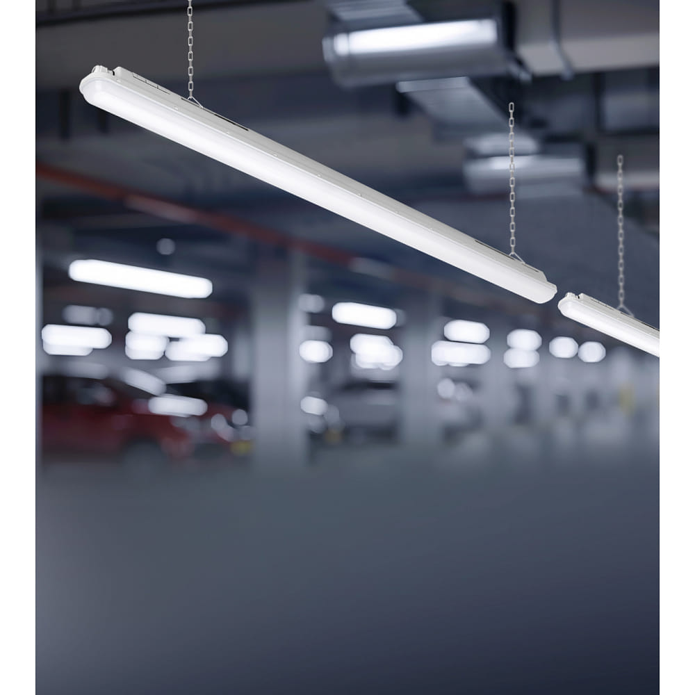 The LED Batten Light can be used as a ceiling light, wall light, or pendant light (with optional suspension). It is ideal for use in various areas such as bathroom, basement, garage, or other moisture-prone areas. With a protection class of 2 and a switching cycles of 15000, it is particularly durable and reliable.