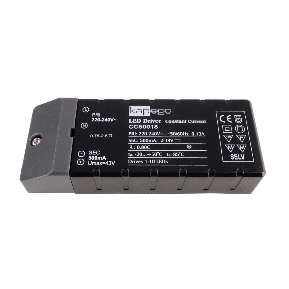 Deko-Light Power supply BASIC, CC, CC50018/18W, current constant, 220-240V AC/50-60Hz, sec. 2-38V DC, 500mA