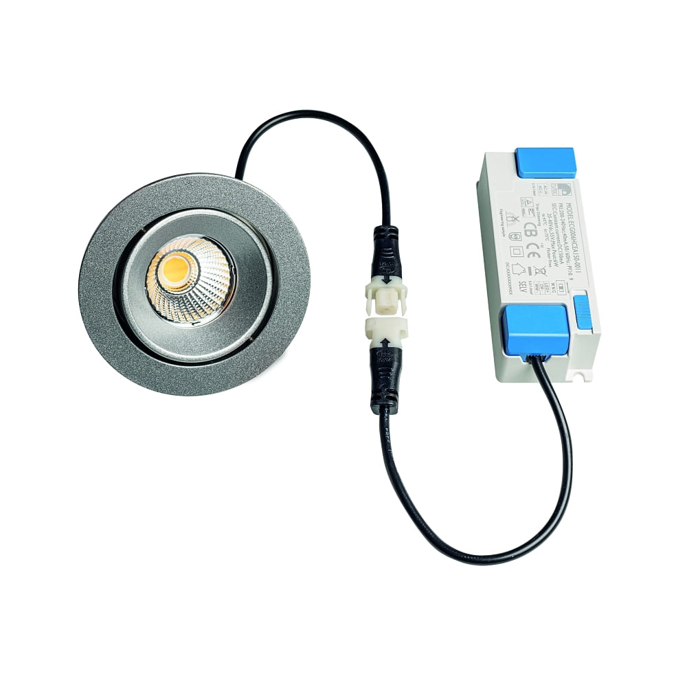The set already includes the required light source and a 40cm long connection cable. Installation is tool-free and the LED can be replaced if needed. With a plug type for clamp connections, the installation is quick and uncomplicated. The mounting is done by recessing into the ceiling.